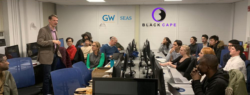 Al Di Leonardo and Abe Usher shed their black capes last night. As board members of The George Washington University - School of Engineering & Applied Science Data Analytics program, they served as “sharks” for Dr. David Broniatowski’s Graduate Data Driven Policy Shark Tank. All of the students including Black Cape’s own, Maddie Warndorf, did an amazing job presenting their topics and demonstrating the importance of data.